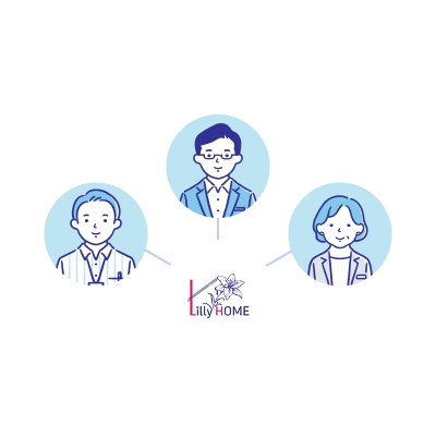 相続には、不動産以外にも専門的な判断が必要な場面があります。LillyHOMEでは、すべてを一社で完結させるのではなく、状況に応じて適切な専門家につなぐ体制を整えています。税務や法務など、専門性が求められる部分については、無理に踏み込まず、必要なタイミングで次の選択肢を提示します。最初から専門家に相談するのが不安な方にとって、間に立って話を整理できる存在であることも、安心して選ばれている理由です。