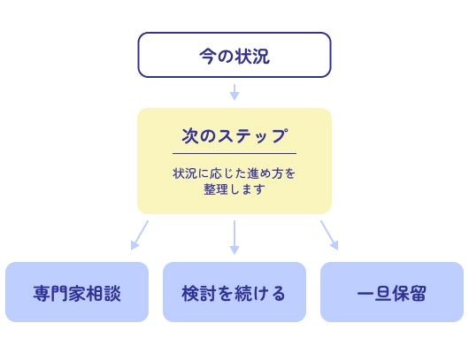 まずは現状を整理し、どんな選択肢があるのかを知ることが大切です。
